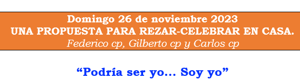 • Jesús da un paso más... además de decirnos: “Podría ser yo”; nos dice: “soy yo”... el que  “tuve hambre y ustedes me dieron de comer; tuve sed y ustedes me dieron de beber. Fui forastero y ustedes me recibieron en su casa. Anduve sin ropas y me vistieron. Estuve enfermo y fueron a visitarme. Estuve en la cárcel y me fueron a ver”. El hambre, la sed, el ser extranjero, el estar sin abrigo, el estar enfermos y el estar presos; estas seis experiencias dejan al desnudo nuestra necesidad del otro y nuestra propia necesidad y son una oportunidad para amar, para seguir sumándonos a este sueño de Dios (El Reino) que es cambiar la lógica: amigo-enemigo, por la lógica: hermano-hermano, hermana-hermana.